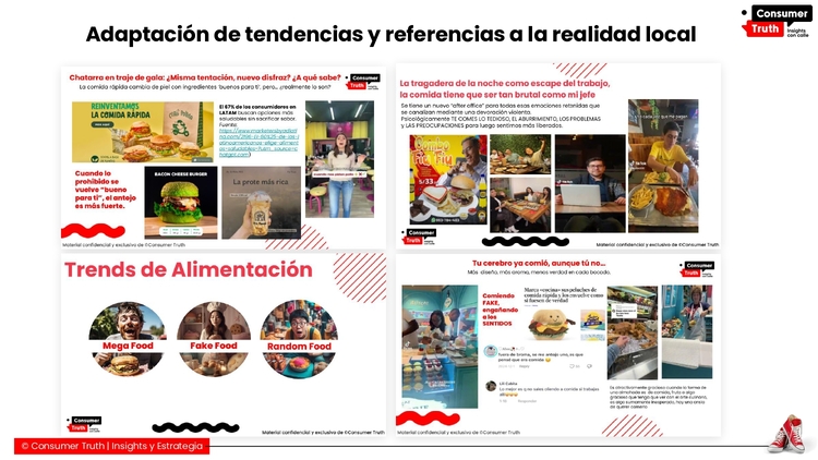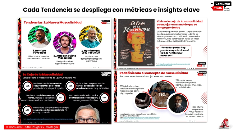 Cada reporte combina data, insights y calle: métricas cuantitativas que validan comportamientos emergentes, junto con un análisis cualitativo y emocional de lo que la gente realmente siente, dice y hace.